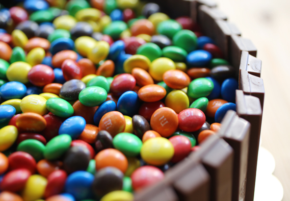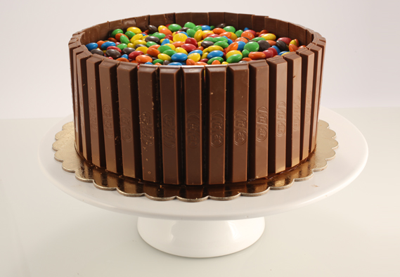 A firm favourite for parties, it is made with a chocolate sponge and chocolate fudge cake, layered with M&Ms; candies and kit kat chocolates