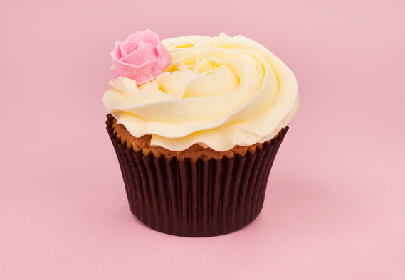 Sponge : Vanilla, Icing : Rosewater Buttercream, Decoration : Inside out (Piped Rosebud on the side), glitter